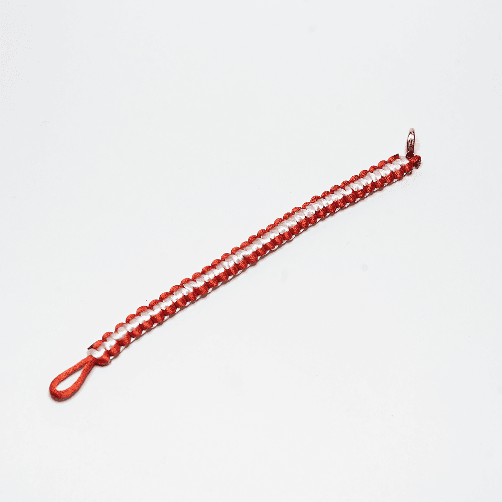 Браслет из ленточек красно-белый