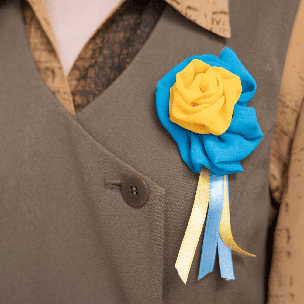 Брошки-цветочки ручной работы в цветах украинского флага от украинки Натальи, которой помогает наш проект