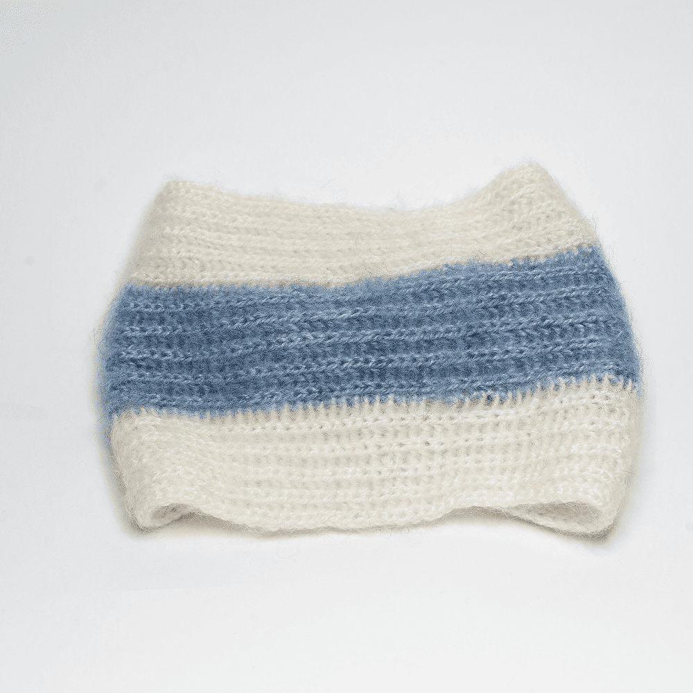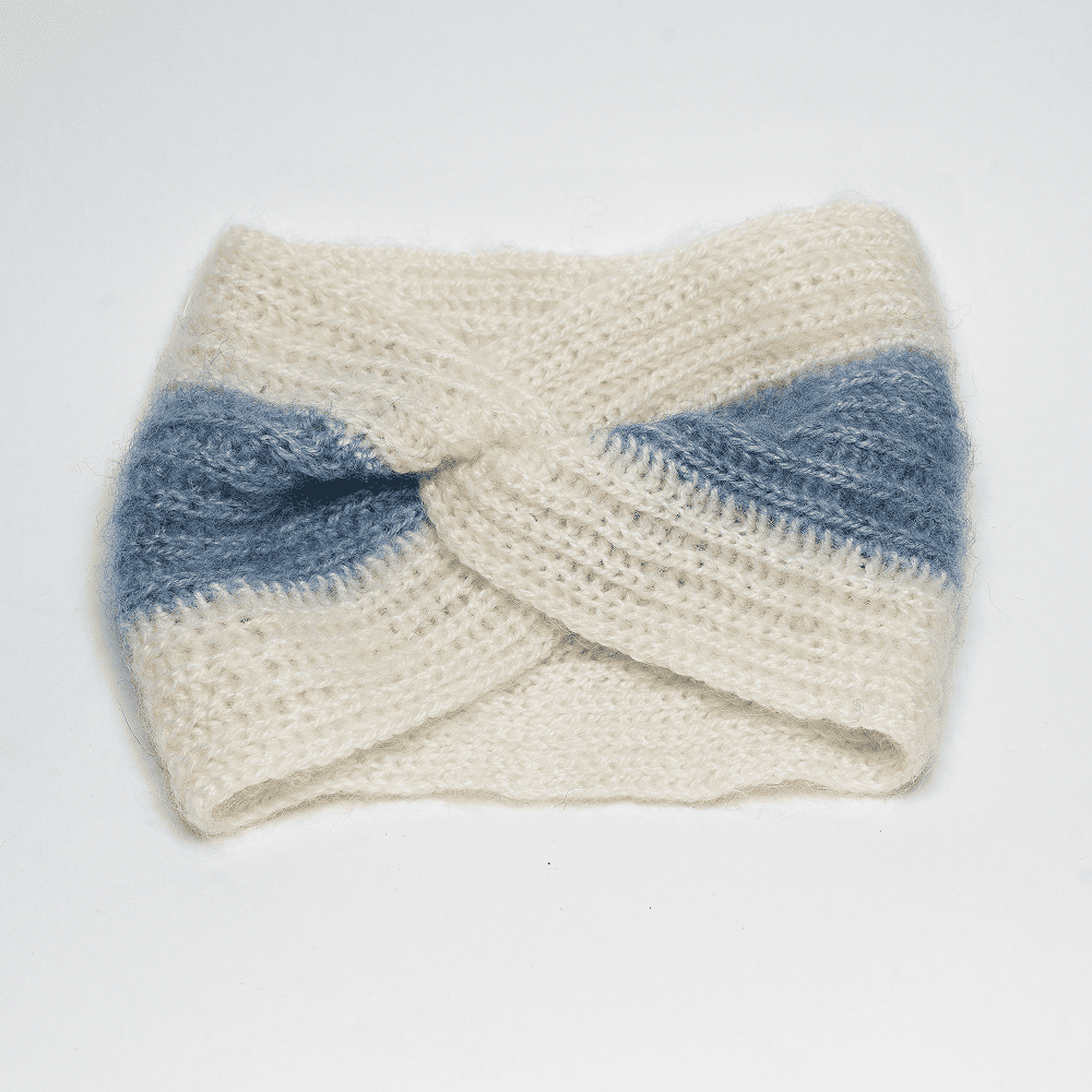 Повязка вязанная на голову ручной работы от волонтёрки Enigration for Action в цветах БСБ